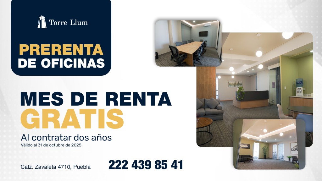 Haz que tu negocio crezca en un espacio que lo respalde. Torre Llum te ofrece oficinas listas, con todo incluido: Internet Recepcionista Seguridad Salas de juntas Al alcance de tu equipo. ¡Conócenos! 222 439 8541